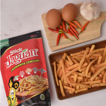 Yakni camilan berbahan baku jagung pilihan, berbentuk stick yang pipih. Stick kemudian diracik dengan bumbu pedas